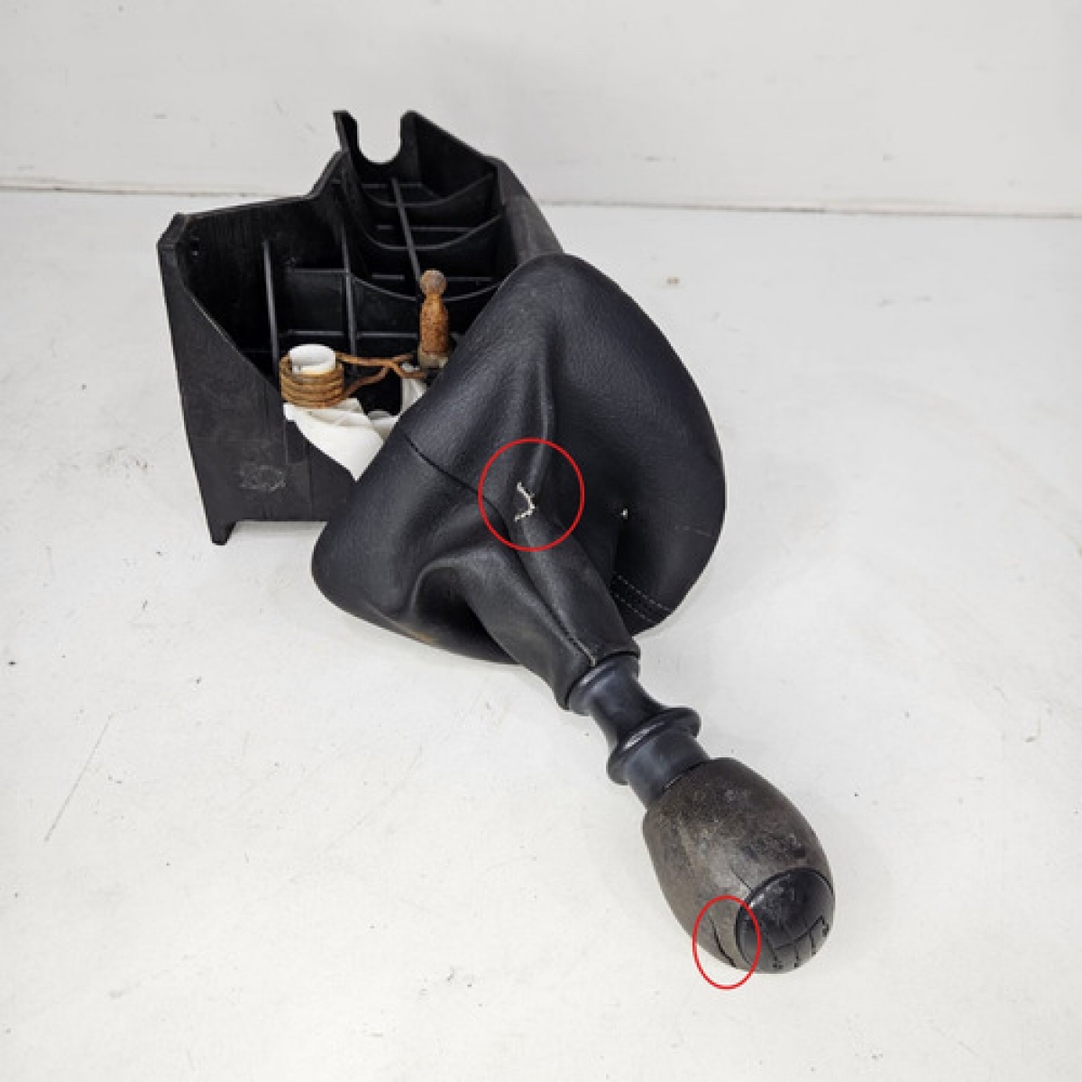 Detalhes: Capa da manopla está rasgada. Borracha da manopla está rachada como mostra a foto circulada em vermelho.
